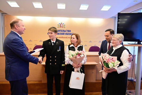 Как сообщает департамент информполитики, в число награжденных вошли студенты Полевского многопрофильного техникума им. Назарова Кирилл Грязных и Игорь Пономарев, которые в апреле спасли жизнь тонущему школьнику, вытащив его из ледяной воды.