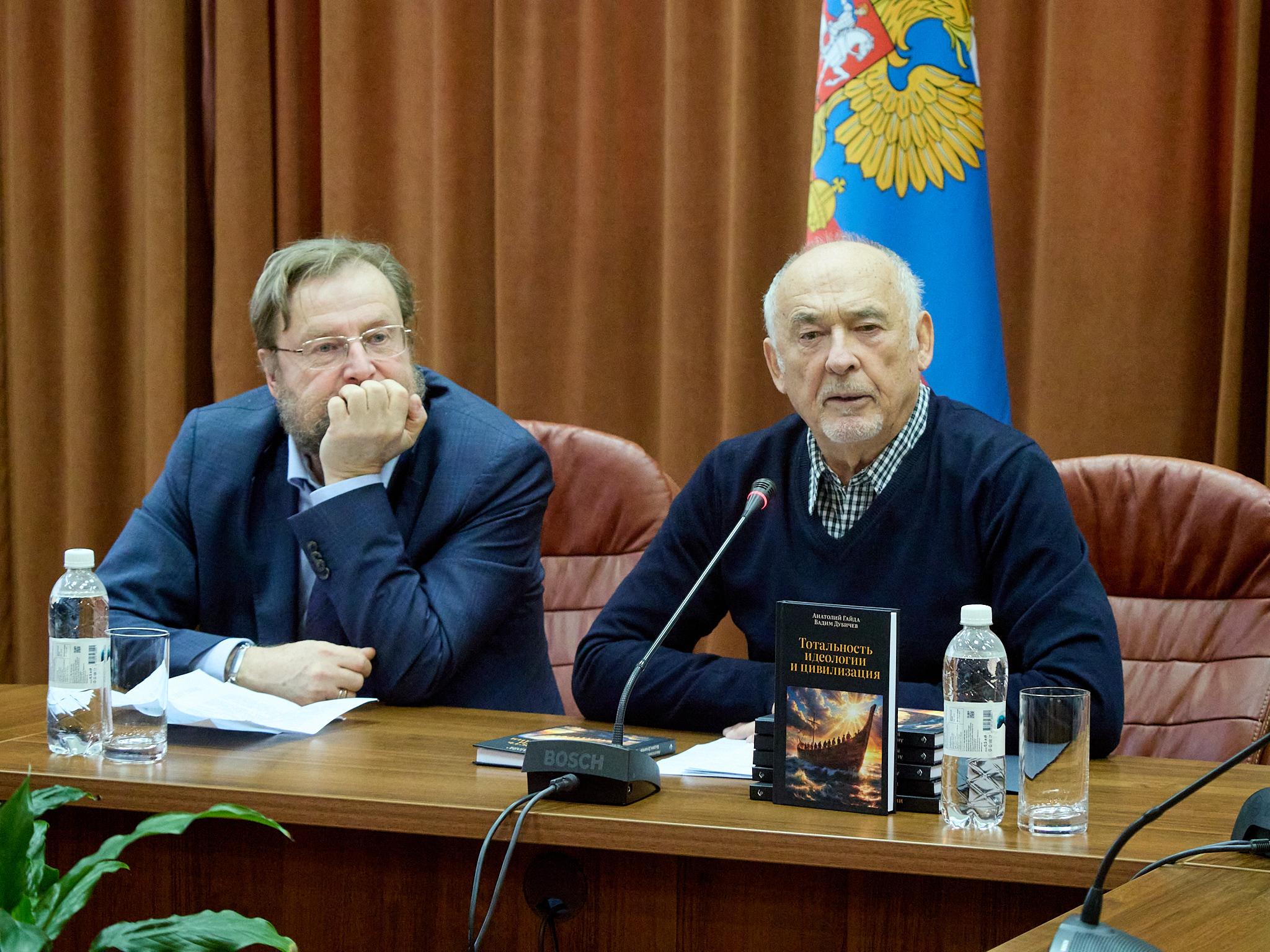 «На сегодняшний момент, в контексте неопределенных экономических направлений, потому что страна переориентируется на новые, восточные повороты, отрадно, что два общественных деятеля, наши коллеги и друзья Анатолий Гайда и Вадим Дубичев решили заняться вечными вопросами идеологии, опираясь на классику философии.